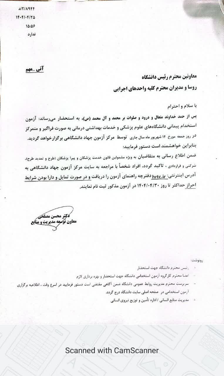 اطلاعیه ثبتنام آزمون قانون خدمت پزشکان و پیراپزشکان،طرح و تمدید طرح