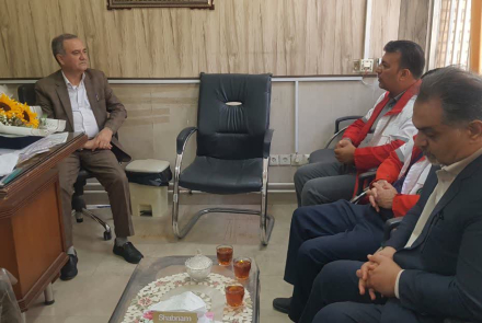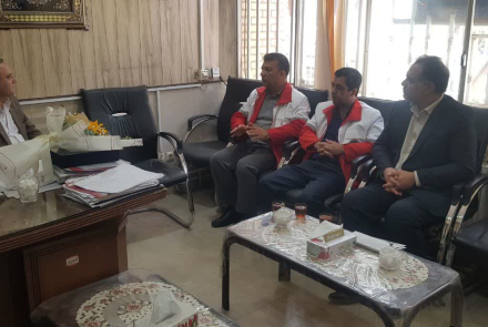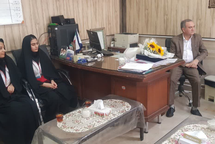 دیدار پرسنل و اعضای جمعیت هلال احمر شهرستان اردستان با رئیس شبکه بهداشت و درمان شهرستان اردستان جناب آقای دکتر ذبیحی و رئیس بیمارستان شهید بهشتی اردستان جناب آقای دکتر زاهد نژاد به مناسبت یکم شهریور ماه و روز پزشک .