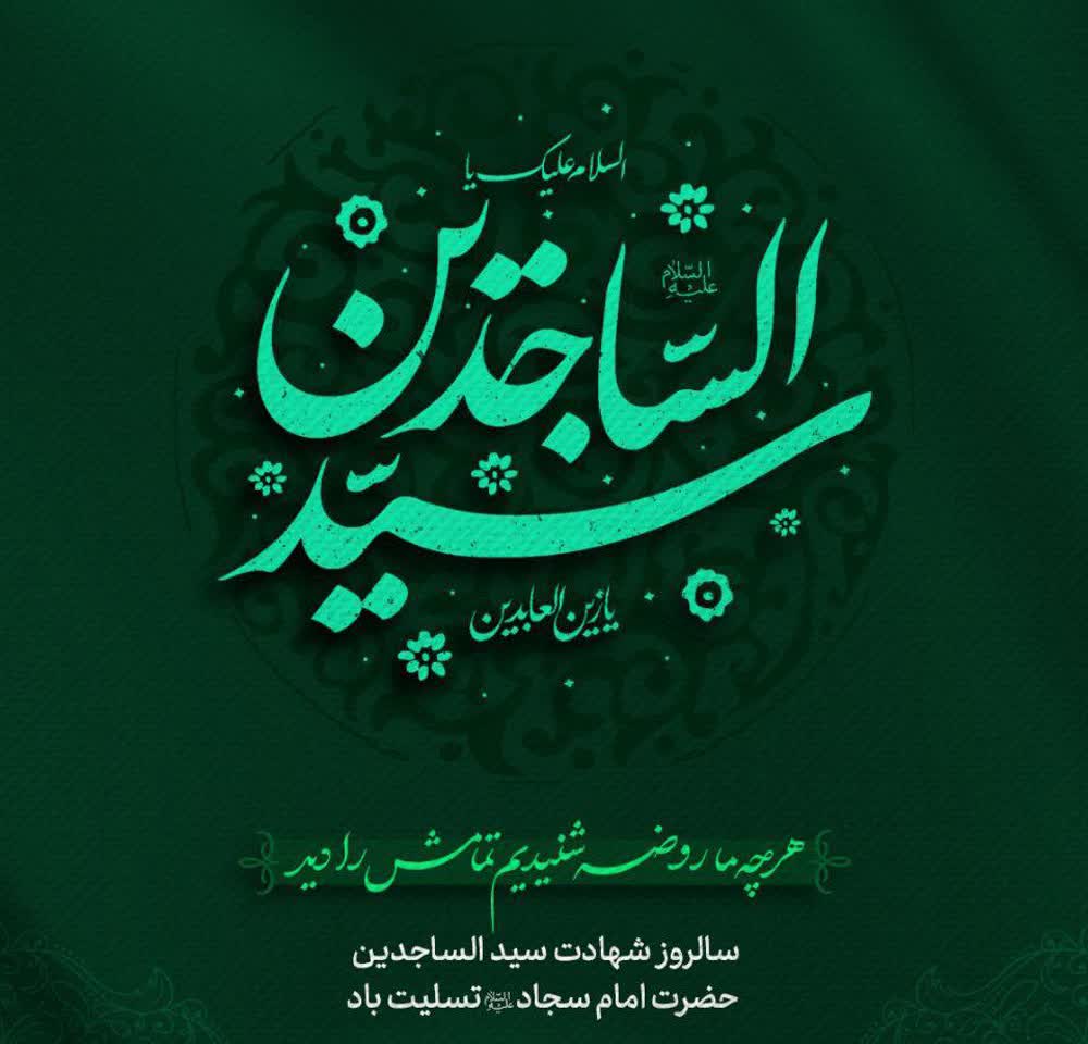 ۞﴾﷽﴿۞ هر چه ما روضه شنیدیم، تمامش را دید .... شهادت یادگار کربلا و مظلومیت اهلبیت (ع)، سید الساجدین، زینالعابدین، امام علی بن الحسین علیهالسلام تسلیت باد.