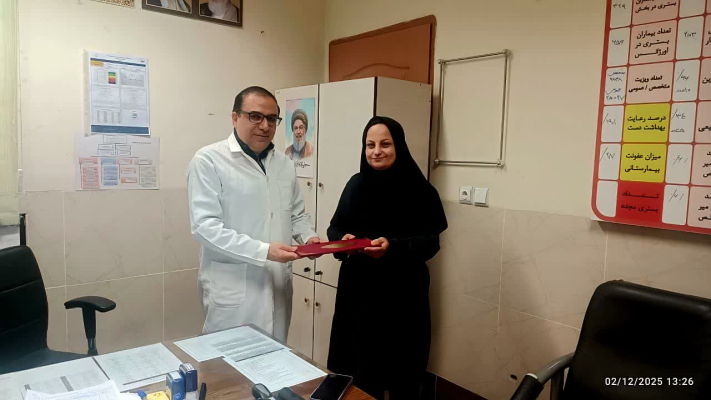 به گزارش روابط عمومی بیمارستان شهیددکتربهشتی اردستان در روز سهشنبه ۱۱ آذر ماه طی مراسمی با حضور رئیس بیمارستان جناب آقای دکترروحانی ،مدیربیمارستان جناب آقای صفدریان ، مسئول کارگزینی ، حراست محترم و مسئول بهبودکیفیت بیمارستان در دفتر ریاست برگزار گردید.