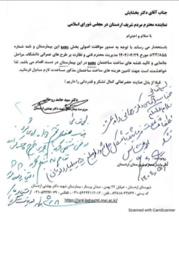 ♻️پیگیری ریاست محترم بیمارستان جناب آقای #دکترروحانی در جهت راه اندازی بخش MRI بیمارستان شهید دکتر بهشتی اردستان