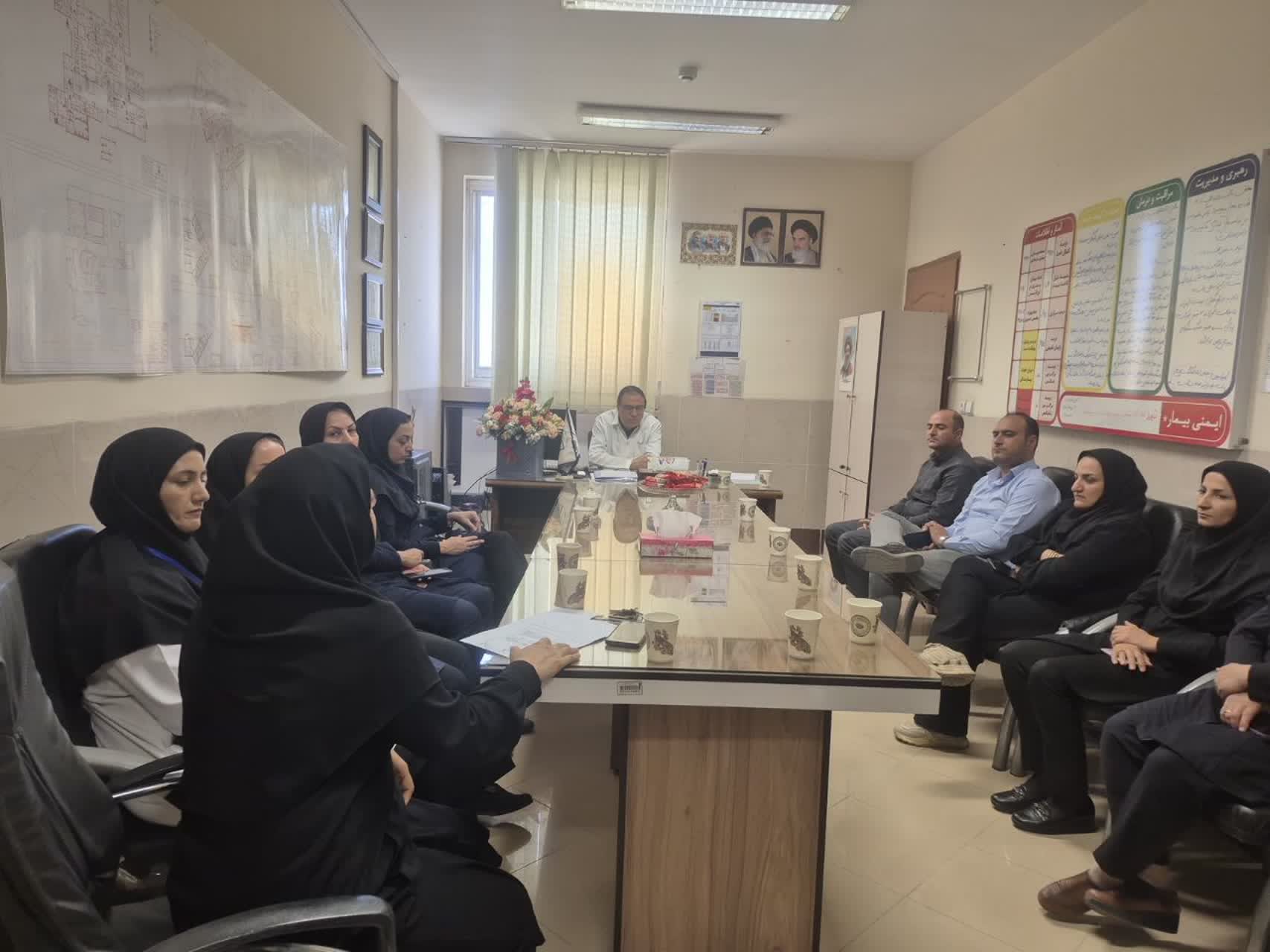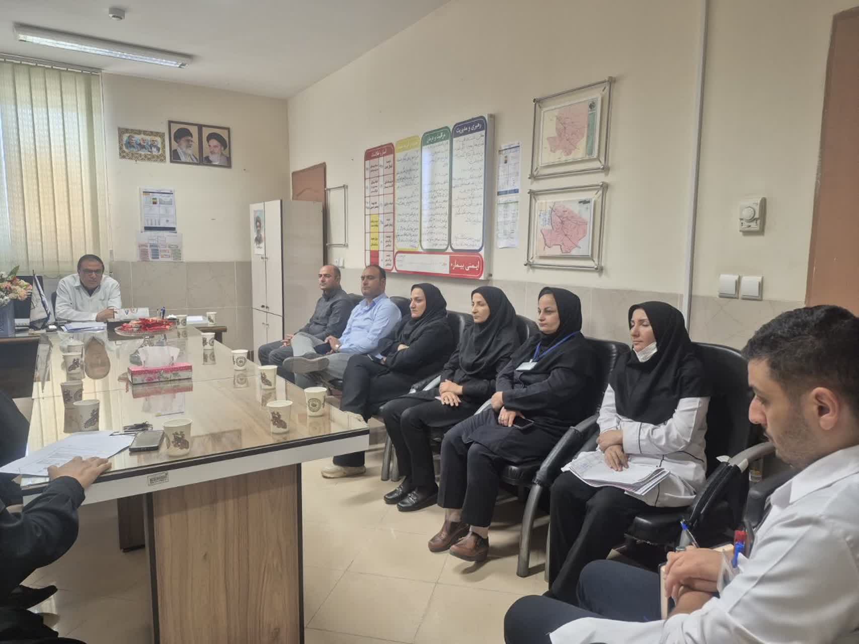 اعضای بسیججامعهپزشکی بیمارستان شهیددکتربهشتی اردستان ، مهمـان پزشک جهادی و رئیس بیمارستان جناب آقای #دکترسیدحامدروحانی، در نشستـی صمیمـی و کاری